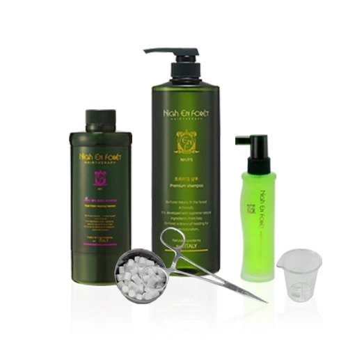 프리미엄 샴푸 (1000ml) , 스켈프헬퍼 클렌징 포 맨 (600ml), 그로스바이탈 (100ml), 켈리 2개, 비커(50ml) 2개, 압축솜 1통